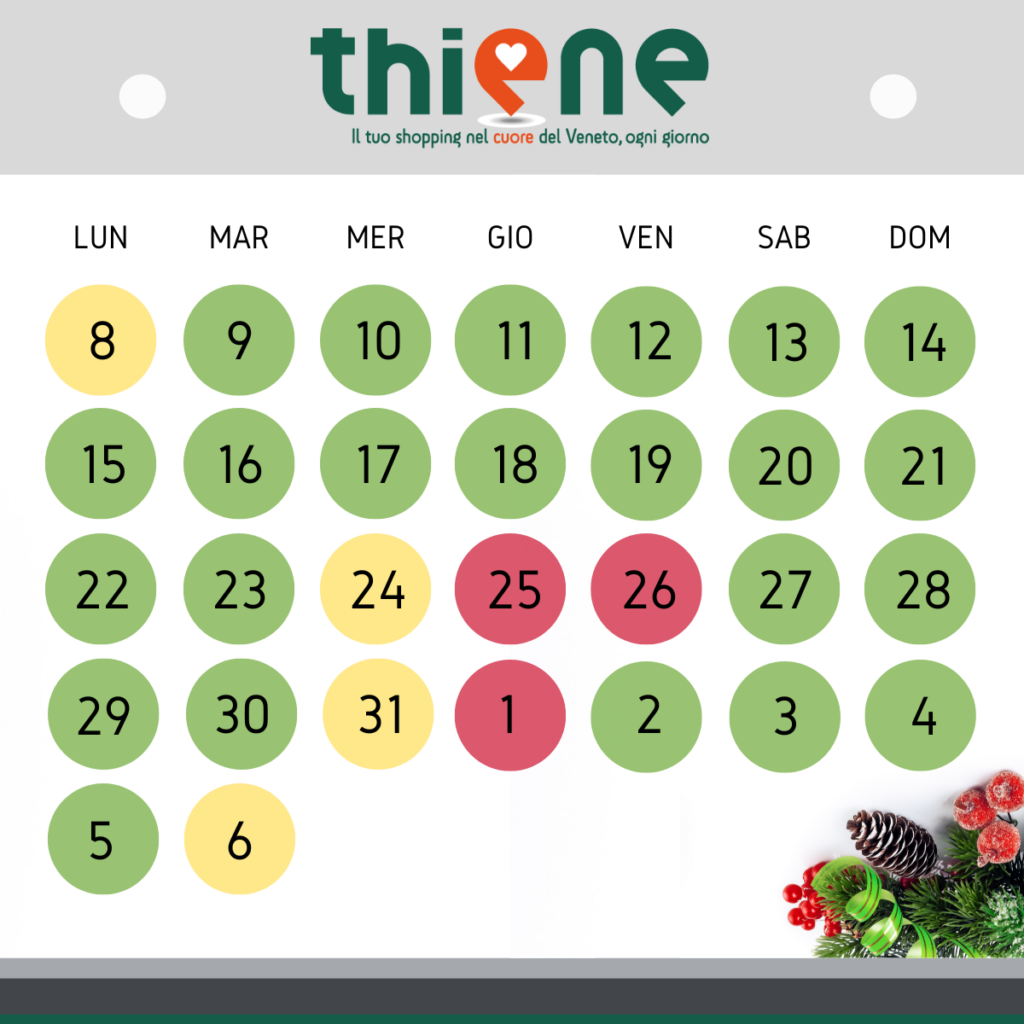 – il 31 dicembre i negozi dalle 9 alle 18, le ristorazioni e IperTosano dalle 8 alle 18;